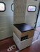 De kast is in gebruikte staat en vertoont normale gebruikssporen. Bekerhouders ontbreken, maar de kast blijft uitstekend bruikbaar als opslag- of koffiemeubel.