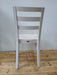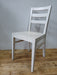 Eetkamerstoel van het merk Satelliet, uitgevoerd in hout met witte afwerking. De stoel verkeert in gebruikt maar goed staat en is geschikt voor dagelijks gebruik aan de eettafel.