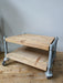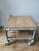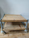 Verrijdbare industriële salontafel, steigerhout / pijp, 70 x 60 x 45 cm.